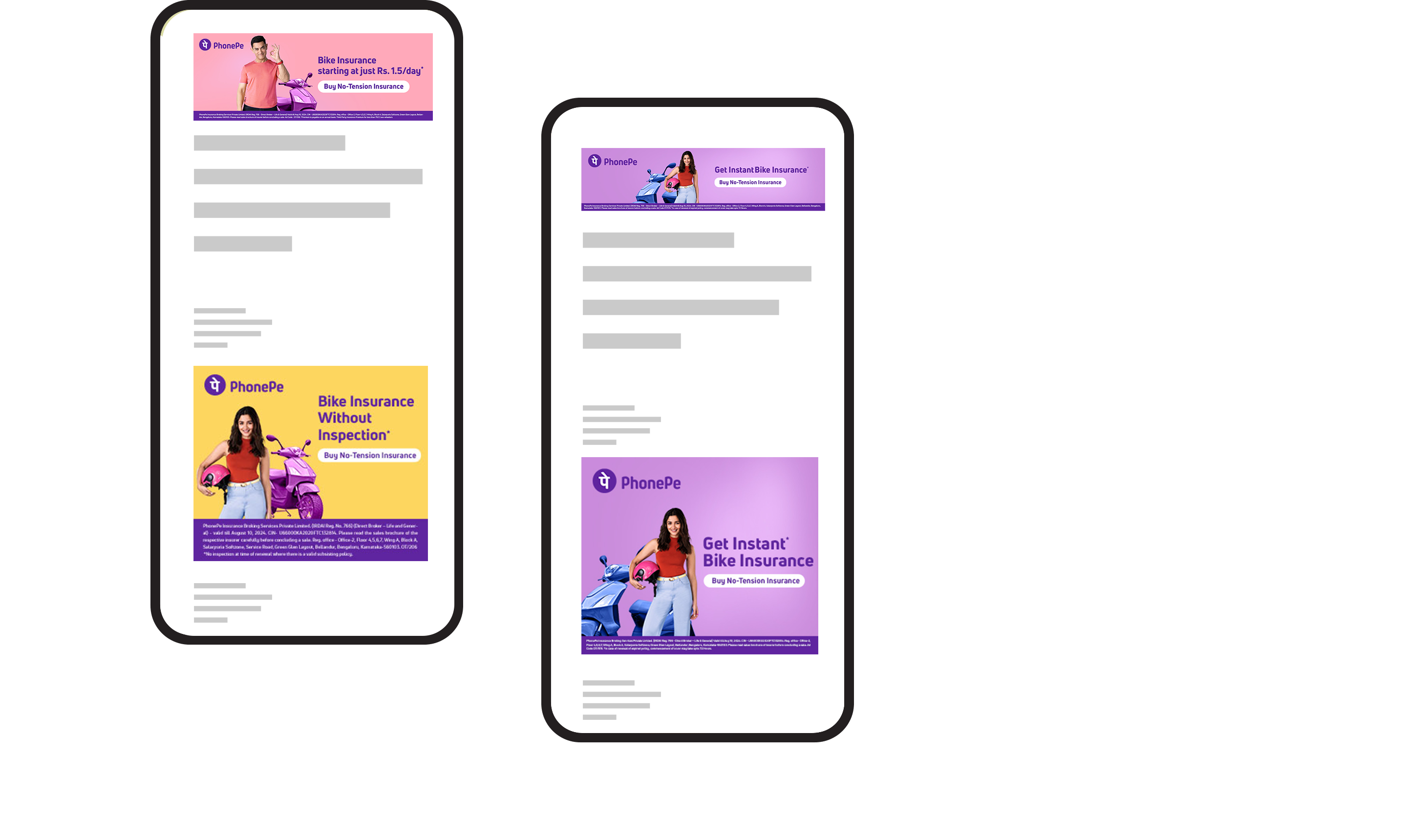 ₹1.5 per day car & bike insurance campaign Instant Motor Insurance campaign Insurance with unwanted add-ons campaign Discuss remarketing message